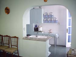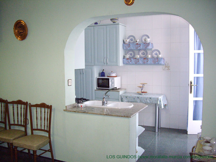 con acceso directo al comedor, equipada con microondas, frigorífico, y todos